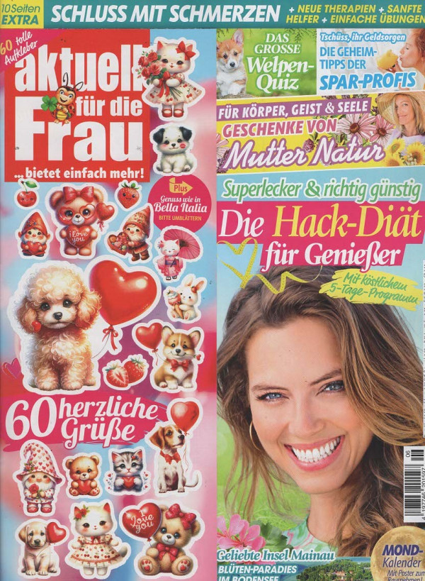 Scopri le ultime tendenze con 'Aktuell für die Frau'. Questa rivista offre consigli su benessere, alimentazione e stile di vita, con un focus speciale su diete gustose e convenienti. Trova anche idee regalo e test divertenti per tutta la famiglia.