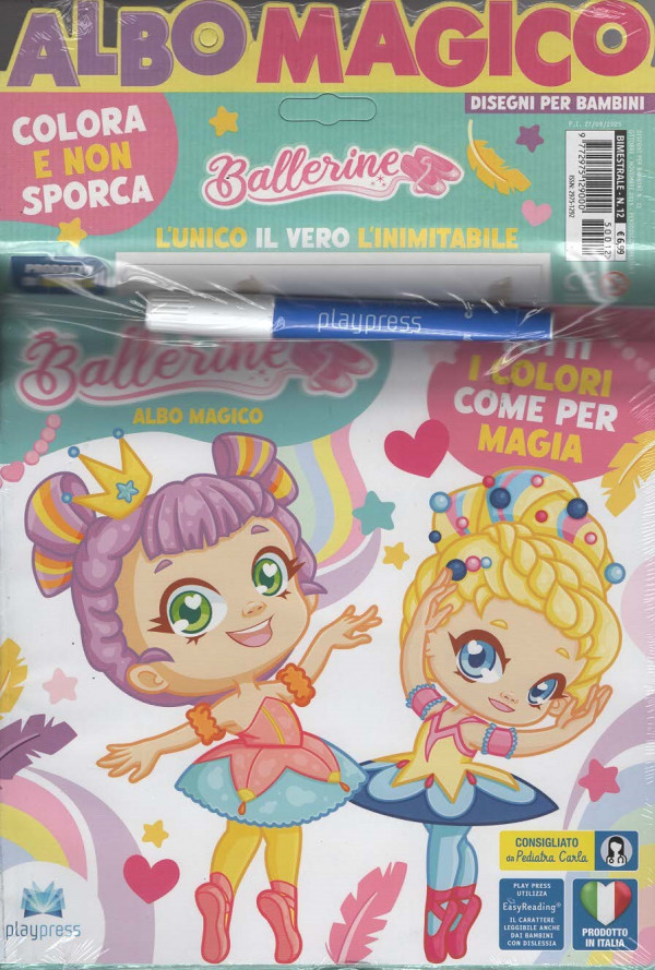 Scopri il fantastico mondo delle ballerine con l'Albo Magico. Disegni divertenti e colorati per intrattenere i bambini senza sporcare, grazie all'innovativo pennarello magico incluso.