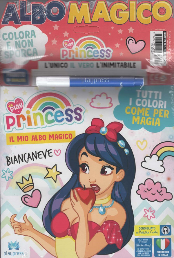 Scopri il fantastico Albo Magico Play Princess dedicato a Biancaneve. Un'esperienza di colorazione magica con l'unico pennarello che non macchia. Perfetto per i bambini che amano la magia e i colori con i personaggi delle favole.