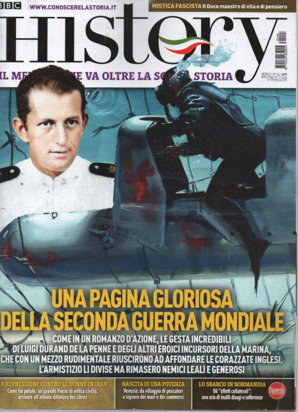 - UNA PAGINA GLORIOSA DELLA SECONDA GUERRA MONDIALE COME IN UN ROMANZO D'AZIONE, LE GESTA INCREDIBILI DI LUIGI DURAND DE LA PENNE E DEGLI ALTRI EROICI INCURSORI DELLA MARINA, CHE CON UN MEZZO RUDIMENTALE RIUSCIRONO AD AFFONDARE LE CORAZZATE INGLESI. L'ARMISTIZIO LI DIVISE MA RIMASERO NEMICI LEALI E GENEROSI