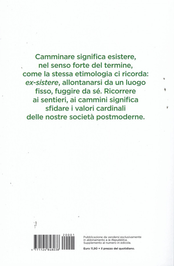 - Camminare significa esistere, nel senso forte del termine, come la stessa etimologia ci ricorda: ex-sistere, allontanarsi da un luogo fisso, fuggire da sé. Ricorrere ai sentieri, ai cammini significa sfidare i valori cardinali delle nostre società postmoderne.