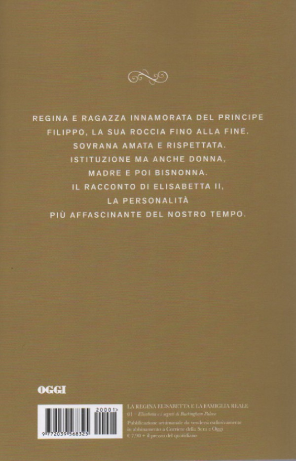 - REGINA E RAGAZZA INNAMORATA DEL PRINCIPE FILIPPO, LA SUA ROCCIA FINO ALLA FINE. SOVRANA AMATA E RISPETTATA. ISTITUZIONE MA ANCHE DONNA, MADRE E POI BISNONNA. IL RACCONTO DI ELISABETTA II, LA PERSONALITÀ PIÙ AFFASCINANTE DEL NOSTRO TEMPO.