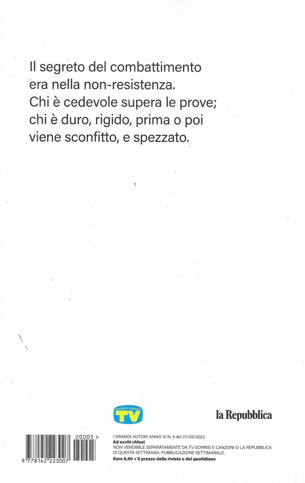 - Il segreto del combattimento era nella non-resistenza. Chi è cedevole supera le prove; chi è duro, rigido, prima o poi viene sconfitto, e spezzato.