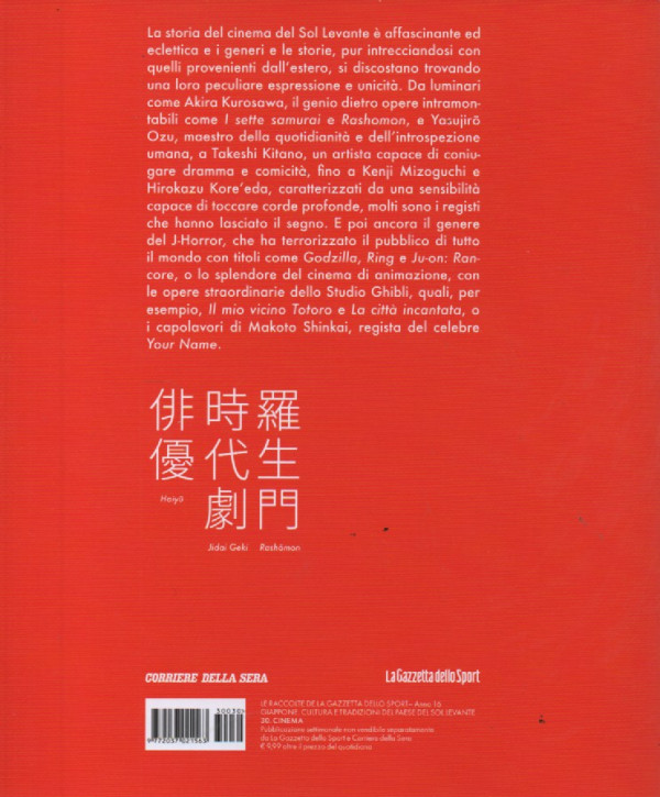 - La storia del cinema del Sol Levante è affascinante ed eclettica e i generi e le storie, pur intrecciandosi con quelli provenienti dall'estero, si discostano trovando una loro peculiare espressione e unicità. Da luminari come Akira Kurosowa, genio dietro opere intramontabili come I sette samurai e Rashoman, Yasujiro Ozu, maestro della quotidianità e dell'introspezione umana, a Takeshi Kitano, un artista capace di coniugare dramma e comicità, fino a Kanji Mizaguchi e Hirokazu Kore'eda, caratterizzati da una sensibilità capace di toccare corde profonde, moli sono i registi che hanno losciato il segne. E poi ancora 1 genere del J Horror, che ha terrorizzato il pubblico di tutto il mondo con titoli come Godzille, Ringe Juon: Ran care, o la splendore del cinema di animazione, con le opere straordinario dello Studio Ghibli, quali, per esempio, Il mio vicino Totoro e la città incantata, a i capolavori di Makoto Shinkai, regista del celebre Your Name