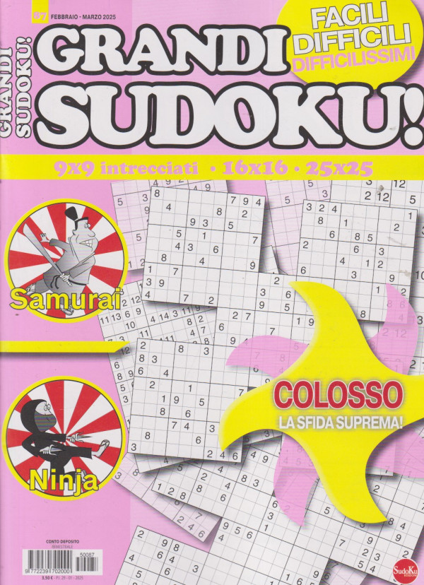 Scopri una vasta gamma di Sudoku con vari livelli di difficoltà. Dal Samurai al Ninja, sfida te stesso con enigmi 9x9, 16x16 e 25x25 nella rivista Grandi Sudoku.