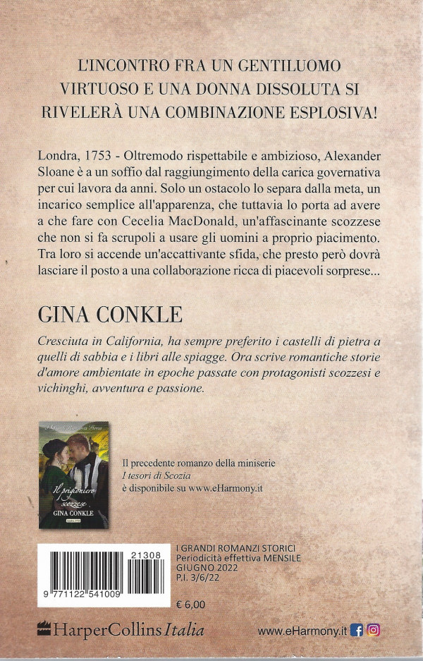 - Londra, 1753 - Oltremodo rispettabile e ambizioso, Alexander Sloane è a un soffio dal raggiungimento della carica governativa per cui lavora da anni. Solo un ostacolo lo separa dalla meta, un incarico semplice all'apparenza, che tuttavia lo porta ad avere a che fare con Cecelia MacDonald, un'affascinante scozzese che non si fa scrupoli a usare gli uomini a proprio piacimento. Tra loro si accende un'accattivante sfida, che presto però dovrà lasciare il posto a una collaborazione ricca di piacevoli sorprese...