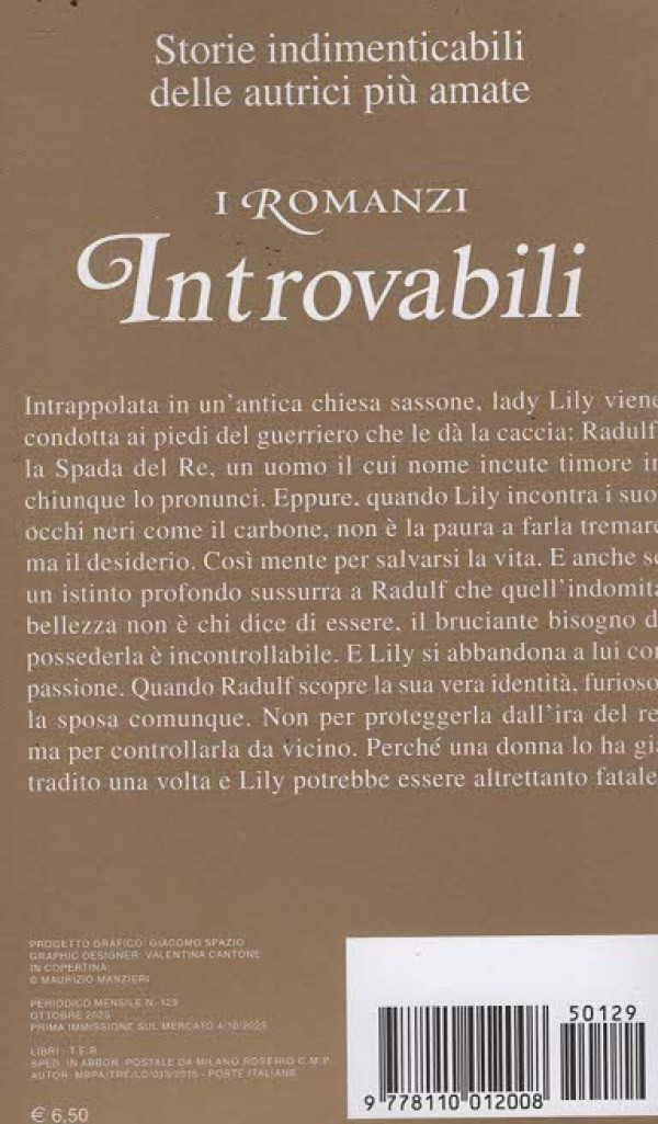 Intrappolata in un'antica chiesa sassone, lady Lily viene condotta ai piedi del guerriero che le dà la caccia: Radulf la Spada del Re, un uomo il cui nome incute timore in chiunque lo pronunci. Eppure, quando Lily incontra i suo occhi neri come il carbone, non è la paura a farla tremar ma il desiderio. Così mente per salvarsi la vita. E anche s un istinto profondo sussurra a Radulf che quell'indomita. bellezza non è chi dice di essere, il bruciante bisogno di possederla è incontrollabile. E Lily si abbandona a lui co passione. Quando Radulf scopre la sua vera identità, furiose la sposa comunque. Non per proteggerla dall'ira del re ma per controllarla da vicino. Perché una donna lo ha già tradito una volta e Lily potrebbe essere altrettanto fatale.