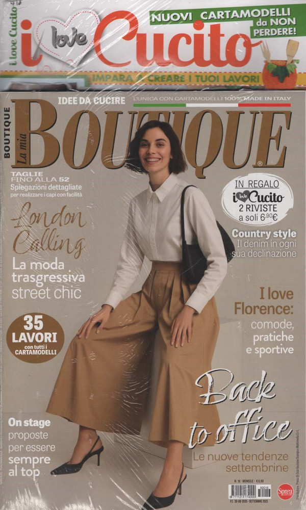 Scopri i nuovi cartamodelli nella rivista 'Boutique'. Trova ispirazione per il tuo guardaroba con look sofisticati e pratici per il rientro in ufficio e scopri le tendenze della moda trasgressive e creative.