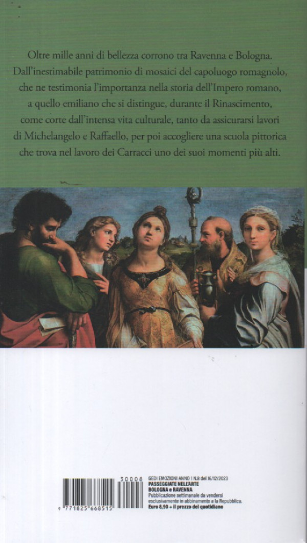- Oltre mille anni di bellezza corrono tra Ravenna e Bologna. Dall'inestimabile patrimonio di mosaici del capoluogo romagnolo, che ne testimonia l'importanza nella storia dell'Impero romano, a quello emiliano che si distingue, durante il Rinascimento, come corte dall'intensa vita culturale, tanto da assicurarsi lavori di Michelangelo e Raffaello, per poi accogliere una scuola pittorica che trova nel lavoro dei Carracci uno dei suoi momenti più alti.