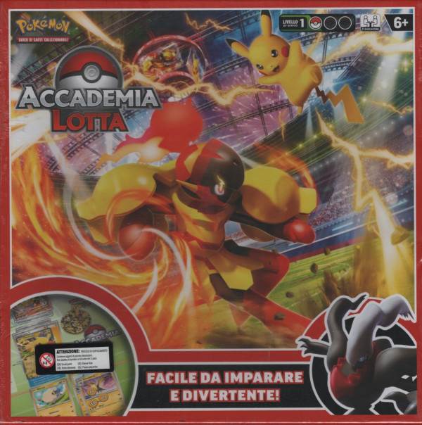 Con l'Accademia Lotta del Gioco di Carte Collezionabili Pokémon sarai pronto sin da subito a scendere in campo con i tuoi Pokémon. L'Accademia Lotta ha tutto quello che serve per due giocatori e, con le due guide pratiche per i mazzi, potrai seguire passo passo la tua prima partita.