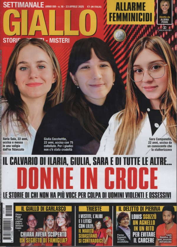 Il settimanale Giallo propone un'edizione intensa focalizzata sugli allarmanti casi di femminicidio. Scopri le storie di Ilaria, Giulia, Sara e molte altre donne vittime di violenza. Analisi dettagliate, approfondimenti e cronache su eventi che scuotono la società.